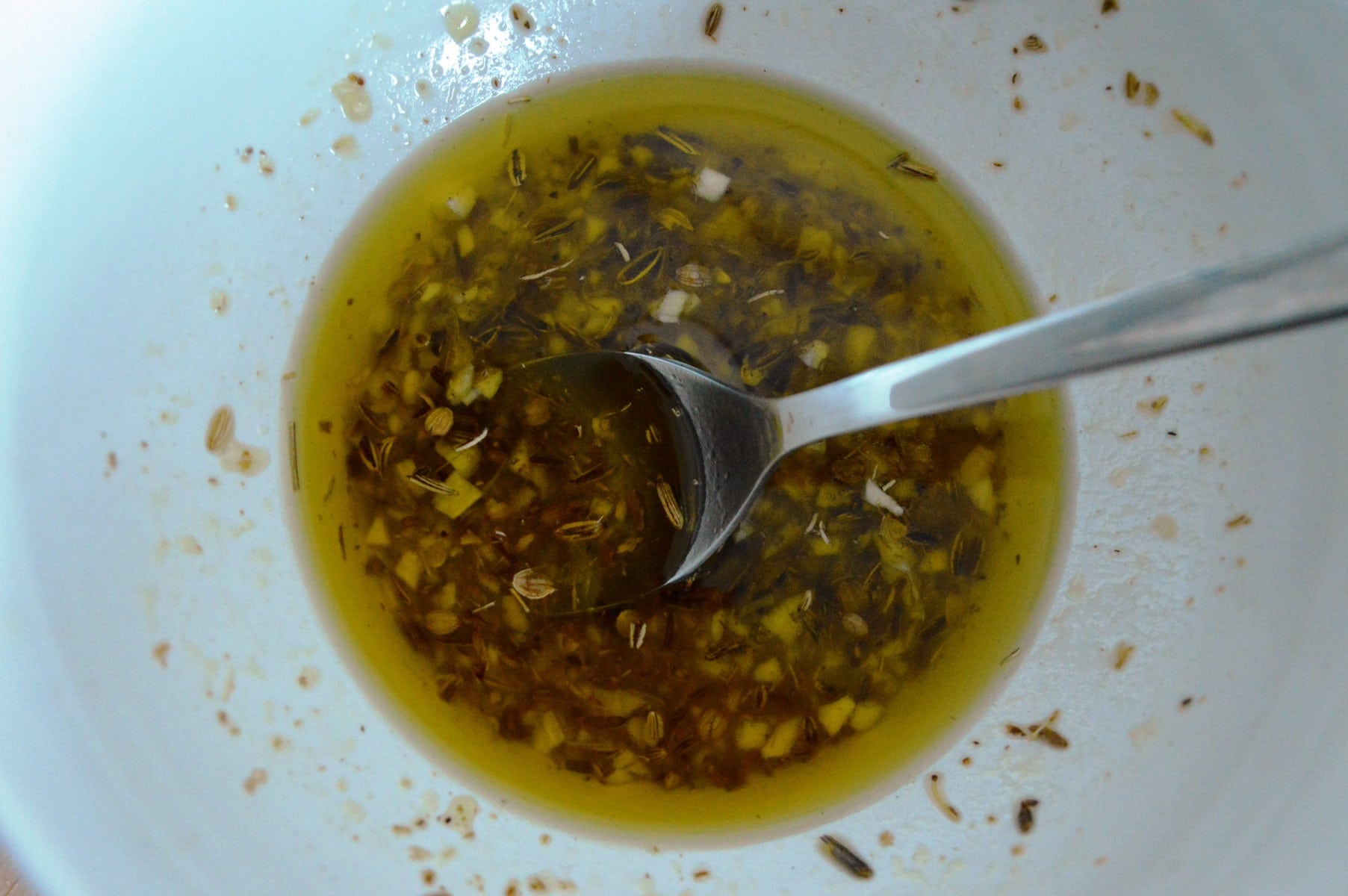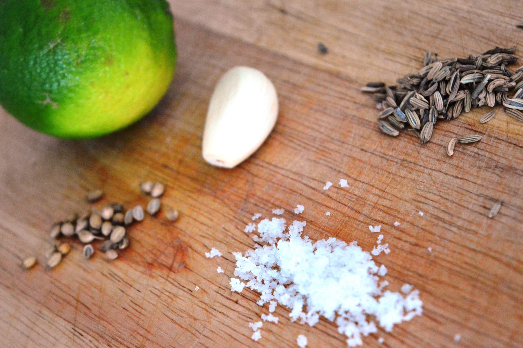 Die Zubereitung der Lachsmarinade ist kinderleicht: Der Knoblauch wird fein gehackt und mit dem Saft der Limette und den anderen Zutaten verrührt oder gemörsert – Fertig ist der leckere Spaß! Wer mag, kann Koriandersaat und Fenchel auch vorab Mörsern, ich mag es bei Gewürzmischungen und Rubs aber gerne mal etwas stückiger; so gibt es statt eines mild-abgerundeten Geschmacks noch Spitzen, Ecken und Kanten, die das Schmecken für mich interessanter machen. Bei beiden Varianten, ob grob oder fein, sollte die Würzmischung mindestens eine Stunde ziehen, damit die Ätherik des Fenchels in der Marinade voll zur Geltung kommt.