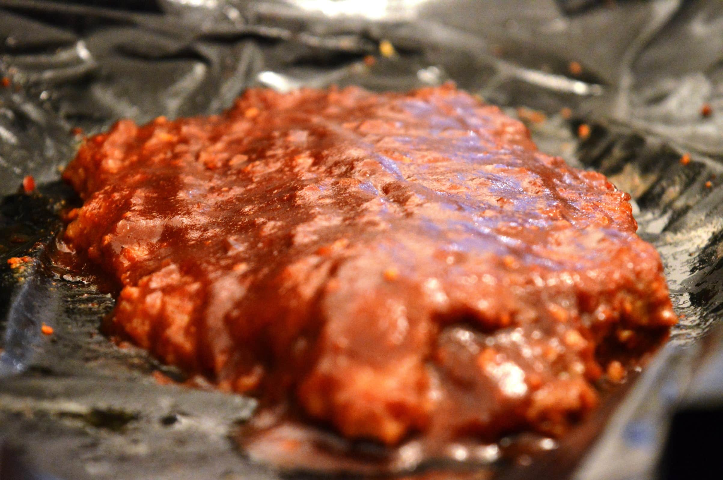 Brisket im Backofen - Metzgerpapier / BackpapierNach besagten sechs Stunden war dann eine Kerntemperatur von rund 65°C erreicht und es folgte eine BBQ-Sauce, die über dem Fleisch verteilt wurde. Das Papier wurde wieder verschlossen und das Brisket im Backofen weiter erhitzt.