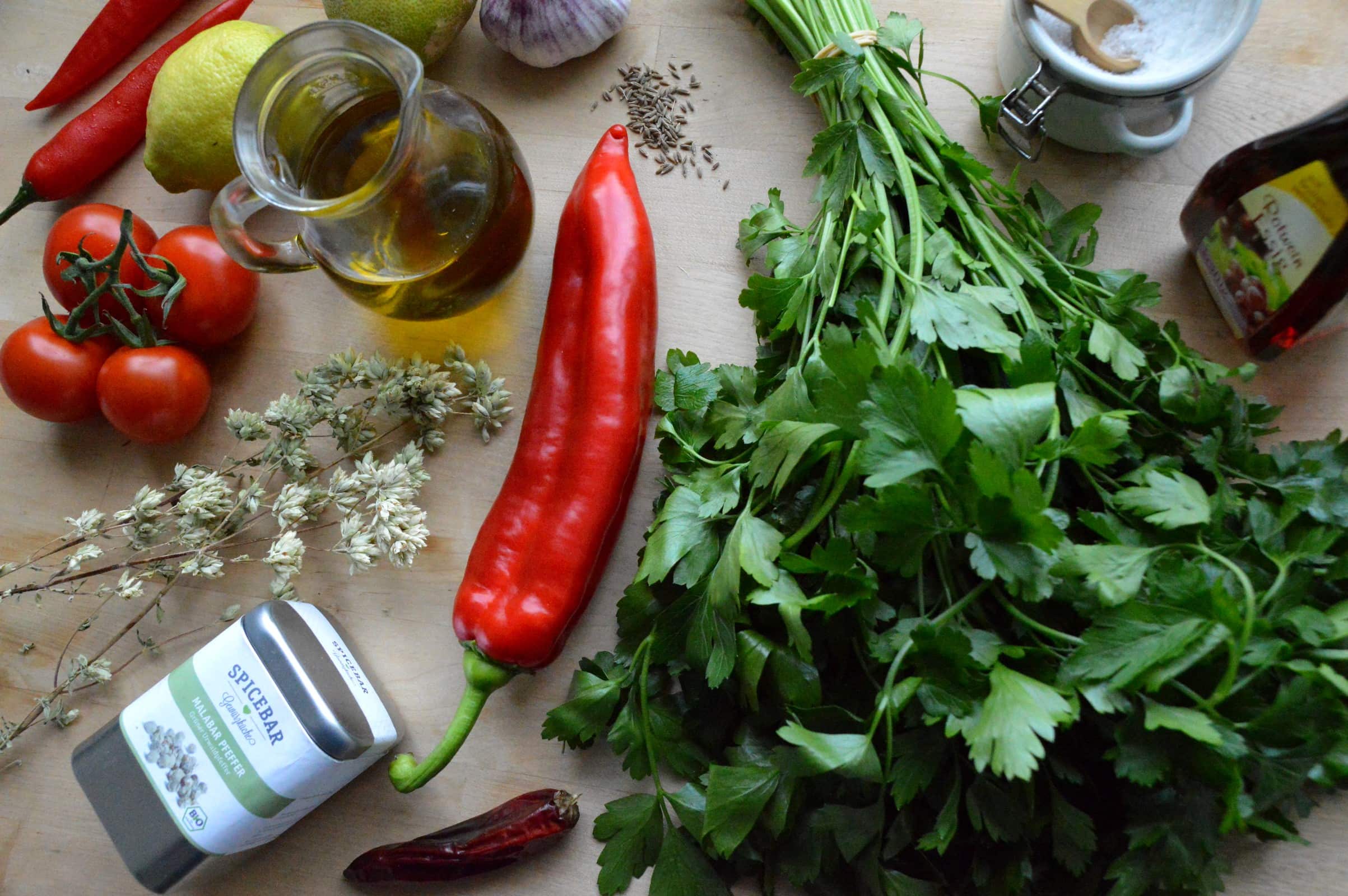 Zutaten für das Chimichurri rojo: